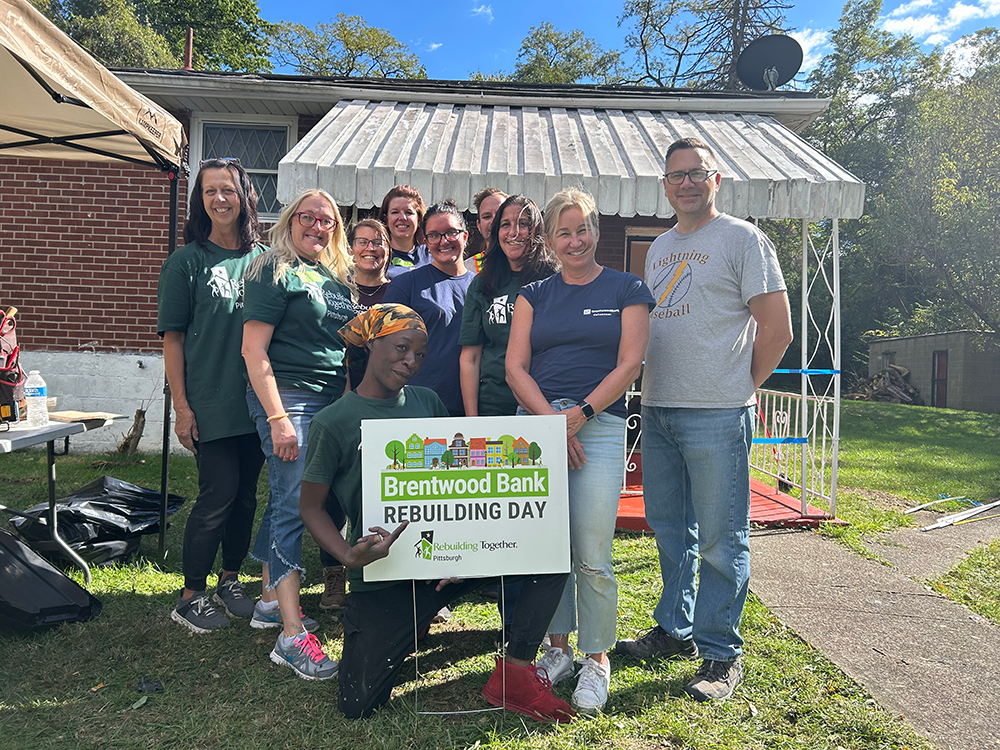 In October 2025, a team of volunteers from the bank spent a day rehabbing a house in a local Pittsburgh neighborhood. Volunteers completed tasks such as installing flooring, building handrails, repairing drywall damage, painting the porch, and organizing.